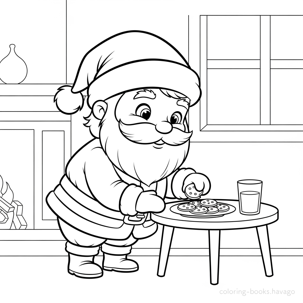 クッキーとミルクで休憩するサンタの塗り絵 | ハバゴ