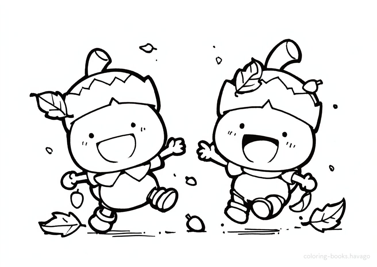 Acorns Playing Together Coloring Page. | havago